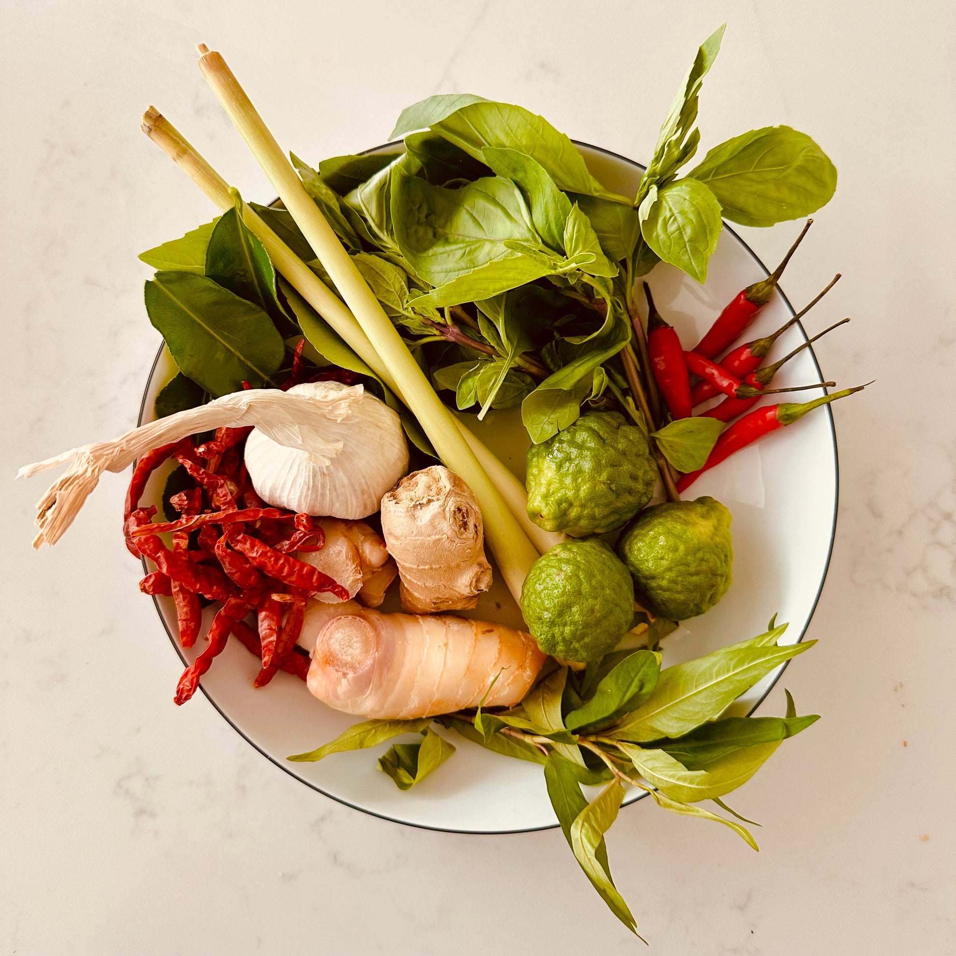 A robust, punchy blend of fresh and dried red chillies, fragrant thai basil, lime leaves, coriander, ginger, galangal and toasted cumin